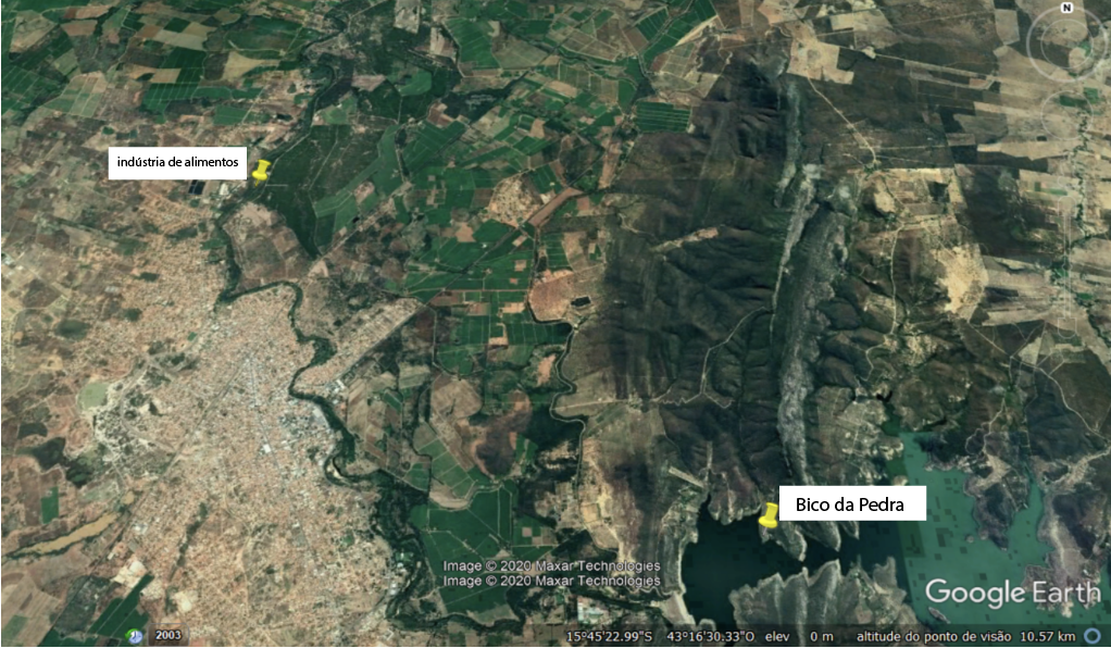 Neste caso específico, foram modelados os parâmetros: oxigênio dissolvido (OD); e demanda bioquímica de oxigênio (DBO5,20), em função do rio ser Classe 2, segundo consta no Plano da Bacia Hidrográfica do rio São Francisco (PBHSF), e, portanto, as concentrações do efluente da indústria de alimentos não poderiam desobedecer aos limites estabelecidos pelo Padrão de Qualidade da Resolução nº 357, de 17 de março de 2005, complementada pela resolução nº 430/2011, que determina que a concentração mínima de OD deve ser maior ou igual a 5,0 mg O2.L-1 e a concentração máxima permitida de DBO5,20 deve ser menor ou igual a 5,0 mg O2.L-1.